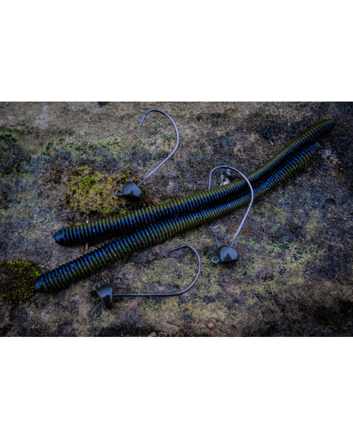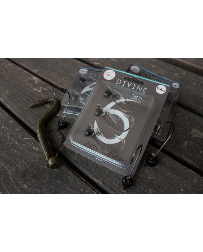 Its uniquely shaped head glides through structure and cover while maintaining bottom contact, and the integrated screw-lock keeper holds your bait securely in place with perfect alignment. Finished with a durable powder coat, the Divine Shakey Head is a go-to for big bait finesse presentations that demand performance and reliability.