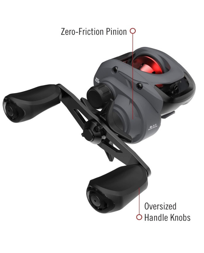Invade 6,1:1 Ratio 5 Bearing (4 + Continuous Anti-Reverse Clutch), Right Hand Retrieve Gray/Red Baitcasting Reel