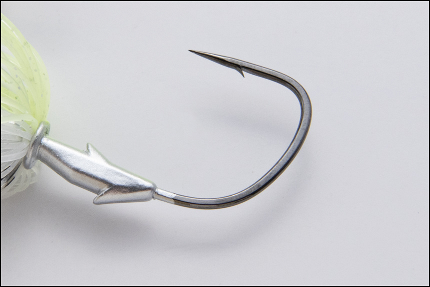 It is rear weighted to prevent the head from dropping when swimming, and it has flat sides and double barbs to accommodate different trailer designs.