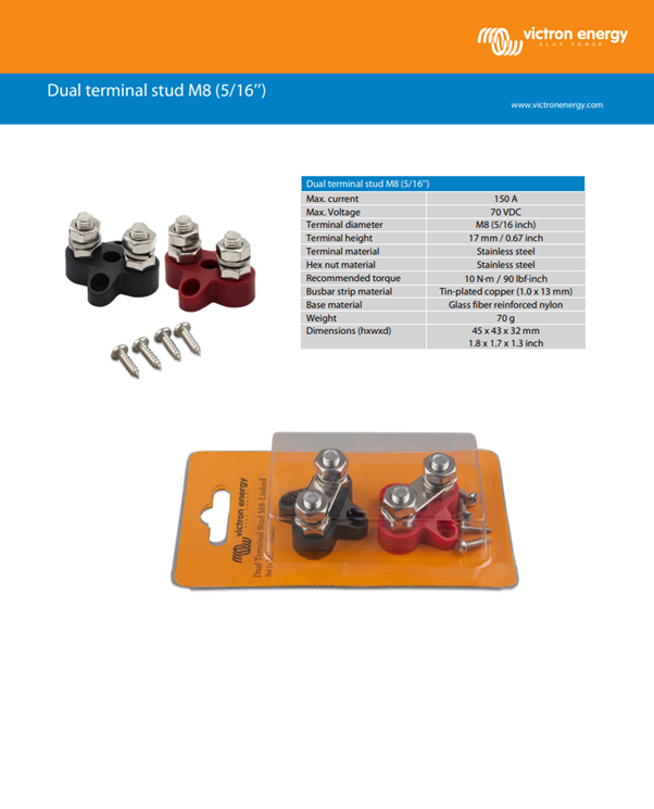 Victron Dual Terminal Stud M8-linked set (1 red/1 black)