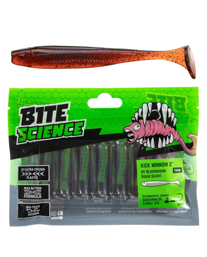 A lot of work has gone into the design and action of this soft plastic. The Kick Minnow takes the slender and compact profile of a minnow and adds a small yet vigorous paddle tail. Max Action Formula means that you get optimum vibration and movement out of your plastic with less work from the rod.