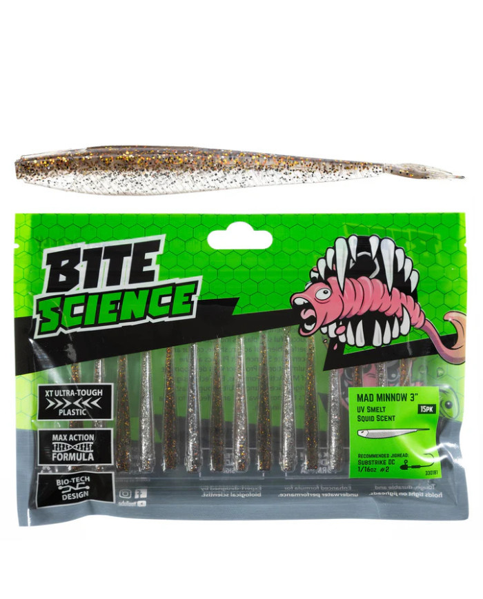Fish go mad for the Mad Minnow! A lot of Bite Science has gone into the design and profile of this minnow style soft plastic.