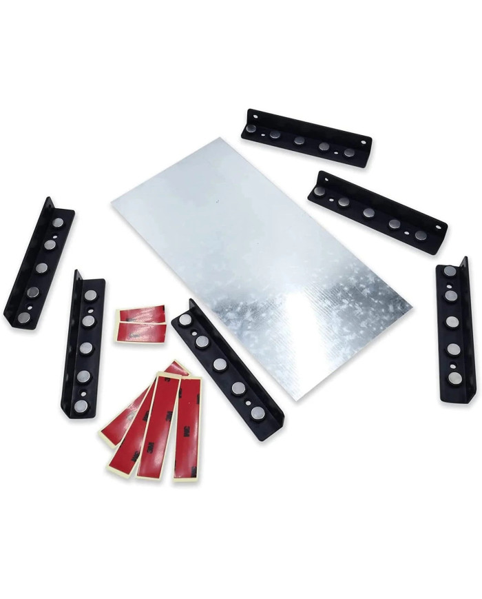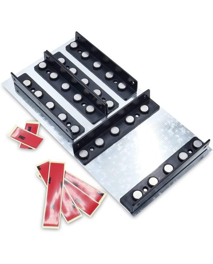 The patent pending Tackle Titan Lure Hangar Kit is a complete magnetic tackle management system in one convenient package. It includes three pairs of Lure Hangars plus a 12 x 6.5" galvanized metal mounting plate. Mount the Tackle Titan Lure Hangar Kit to the inside of a storage compartment lid or compartment sidewall to keep your lure collection safe and organized like never before. Lure Hangar Length: 6"