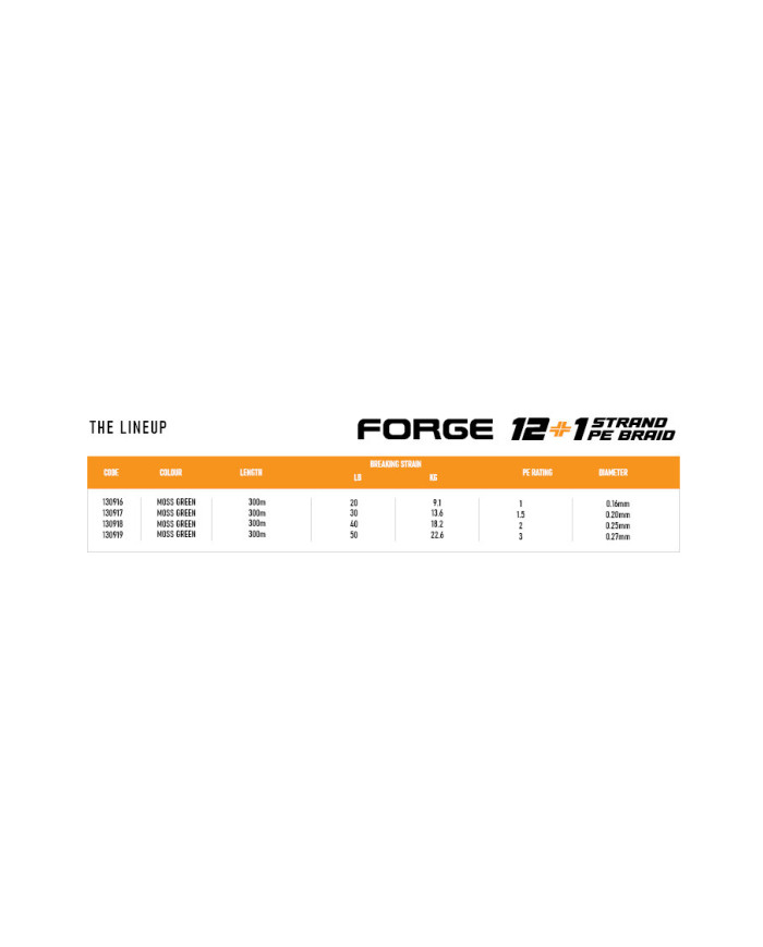 The BOSS BRAID FORGE SERIES is a premium braided line manufactured using 12 high quality PE yarns with an additional monofilament polymer core strand.