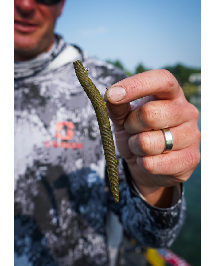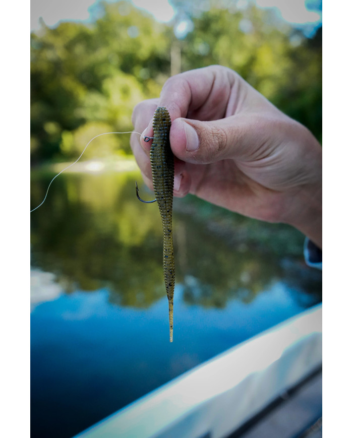 - Gives any soft plastic bait a natural gliding motion by redistributing weight into the body of the bait