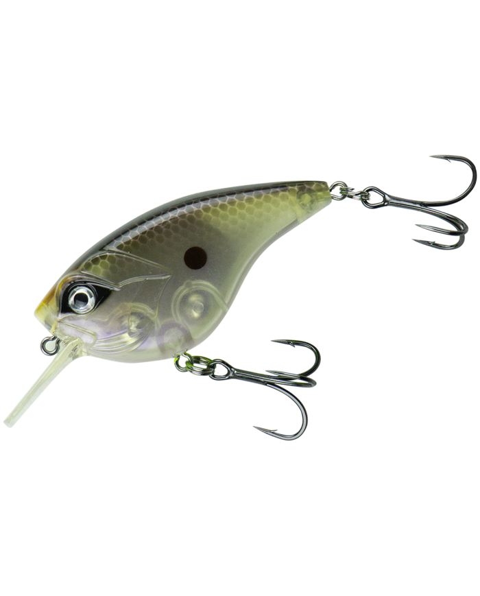 rock and timber. The flat sides create a tight wobble and send out even more vibration allowing fish to use all