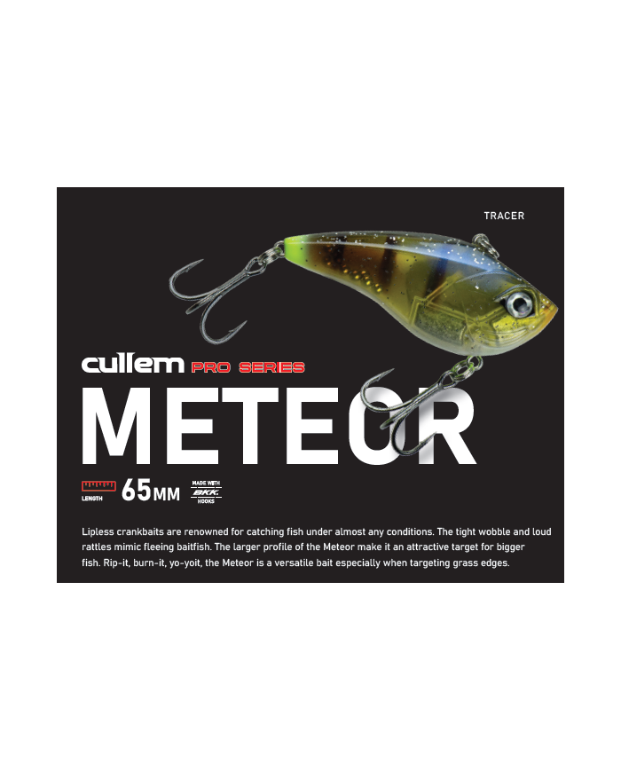 rattles mimic fleeing baitfish. The larger profile of the Meteor make it an attractive target for bigger