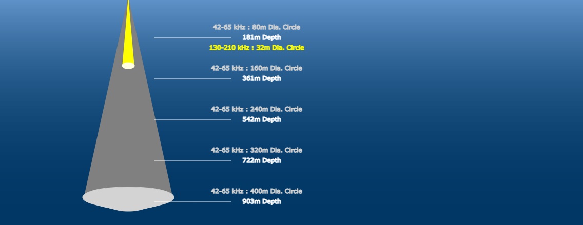 Max Depth: Low frequency- 914 m (3000'), High frequency- 304 m (1000')