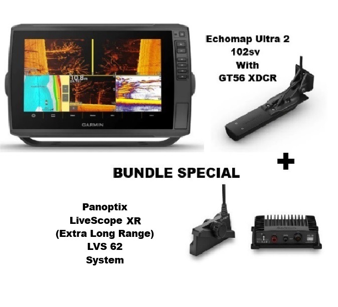 Garmin Echomap Ultra2 102sv w GT56 Xdcr & Panoptix LiveScope XR LVS 62 Bundle