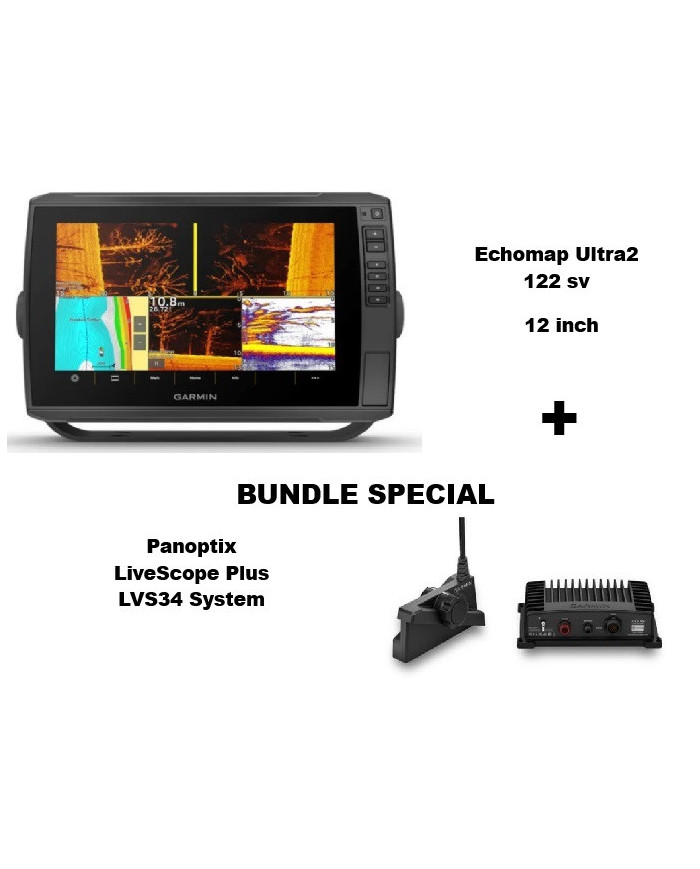 Garmin ECHOMAP Ultra2 122sv 12 inch Chartplotter WITH LiveScope Plus LVS34 System Bundle