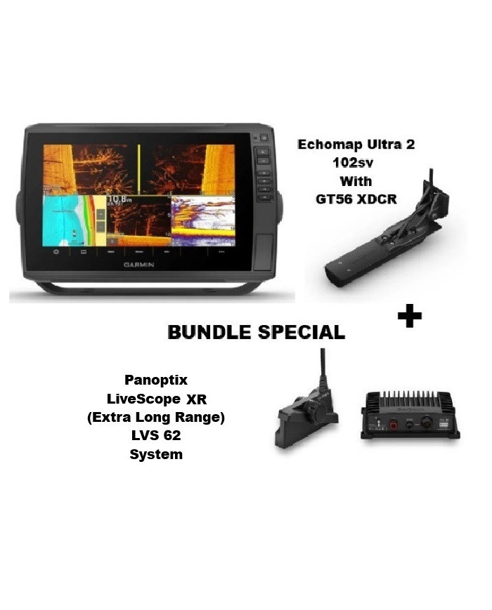 Garmin Echomap Ultra2 102sv w GT56 Xdcr & LiveScope XR LVS 62 Bundle
