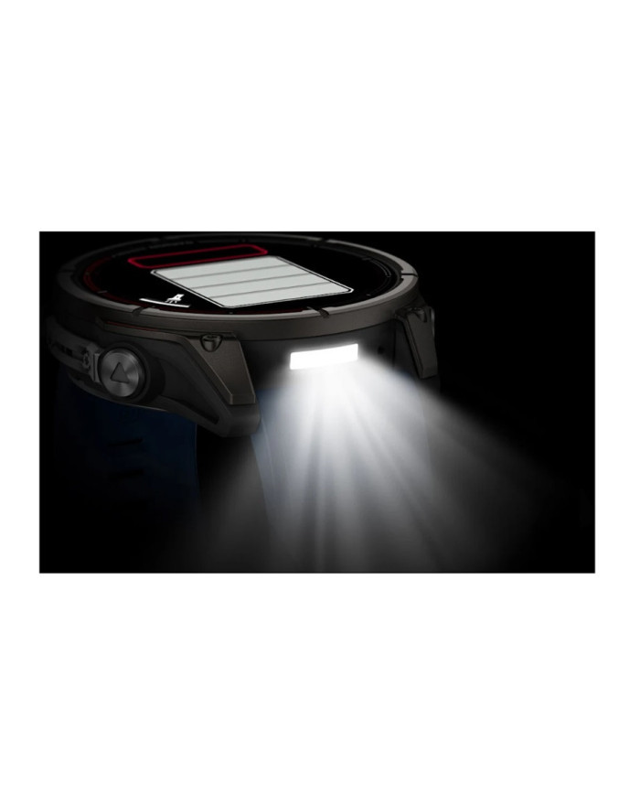 The quatix 8 nautical smartwatch includes a bright 1.4″ AMOLED display and LED flashlight, so you’ll get features you need at the helm and ones you want off it.