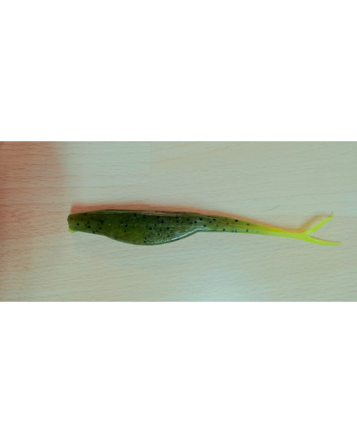 The Signature F100 Fluke Style Bait from Zimbabwe Legend Itty Nolli With the ultimate core shot chartreuse Tail