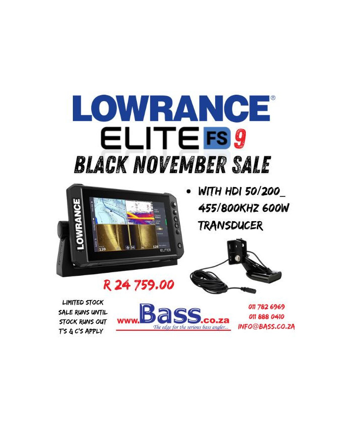 Lowrance Elite FS 9 w HDI 50 / 200 Khz 600 W & DSI Skimmer Transducer BLACK NOVEMBER EDITION
