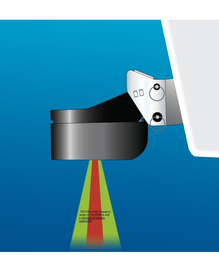 Transom mounted, the TM265-LH CHIRPS across the following bandwidths: LH Model - Low Frequency 42-65 kHz, High Frequency 130-210 kHz
