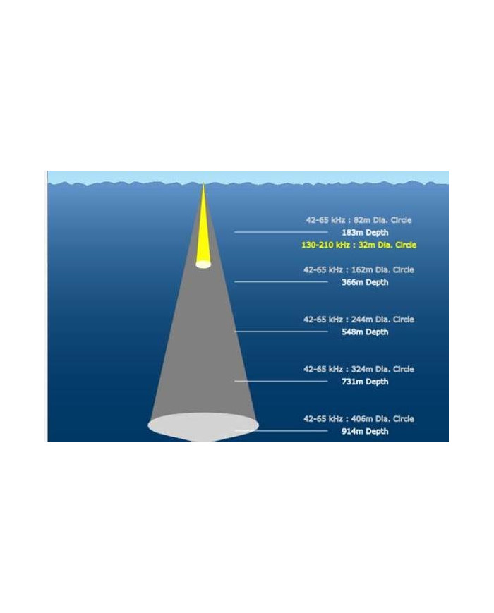 • High—130 kHz to 210 kHz 10° to 6° beamwidth Maximum depth 1000 ft •