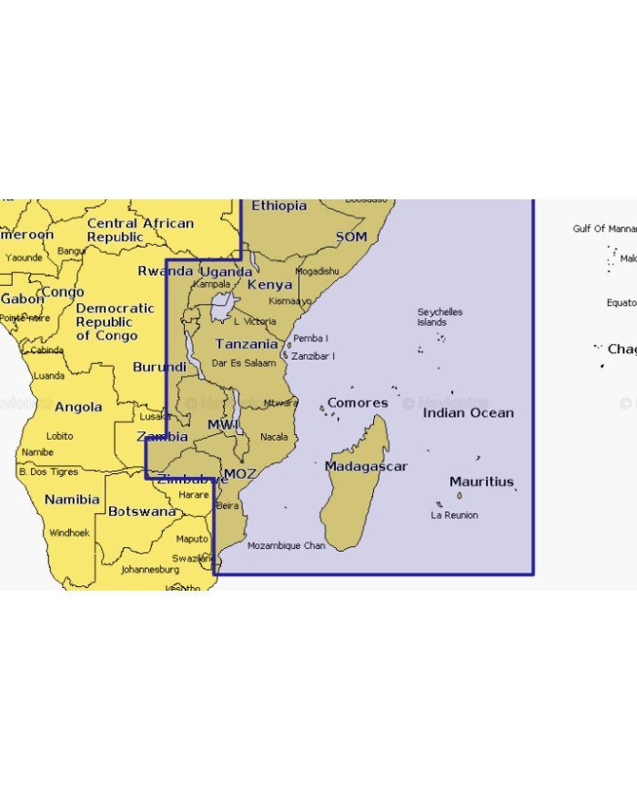Coastal coverage of the east coast of Africa from Maputo Bay to the Horn of Africa, Zanzibar, Madagascar, Mauritius, Reunion and the Seychelles. Coverage includes the ports of Maputo, Mozambique; Dar es Salaam, Tanzania and Mombasa, Kenya.