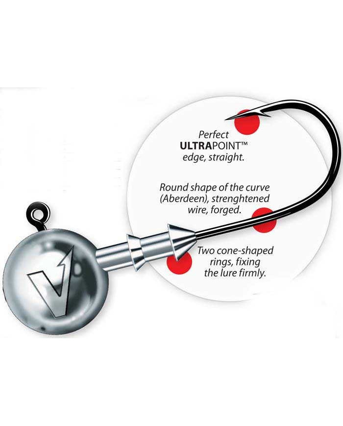 Classic jig heads based on hooks of the highest quality - Mustard Ultra Point - characterized by round hook bend and long, straight bite. The middle part of the shank and the bend itself were laterally flattened in order to improve hooks's tensile strength. The jig heads have very universal adaptation. They are perfect for catching most species of fish on almost every fishery.