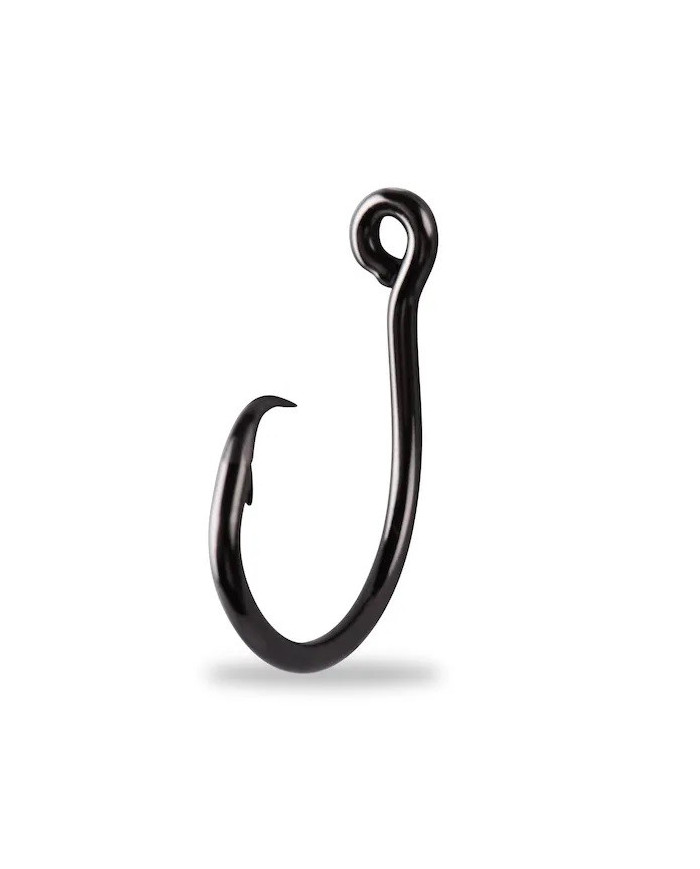 The Mustad Demon Perfect® Circle Inline Hook is a true circle hook. It features 3X strong wire and 2X short shank, making it perfect to battle heavier and bigger fish. The distinct curved shape of the circle hook will, when the fish takes the baited hook and swallows it, ensure that the hook travels to the corner of the mouth or lip, resulting in fewer deep-hooked fish. The circle hook can be used for a whole range of applications from drifting with live bait for Tarpon or trolling for Marlin with bridle rigged live bait to deep-dropping for Swordfish. When live baiting always choose a hook size that matches the bait. Setting the hook is more of a firm tightening of the line, than an actual strike. It is in other words, the ultimate Catch&Release hook. Use it to target Tuna, Marlin, Sailfish, Swordfish, Sharks, Halibut, Wahoo, Amberjack, Permit or Alligator Gar.
