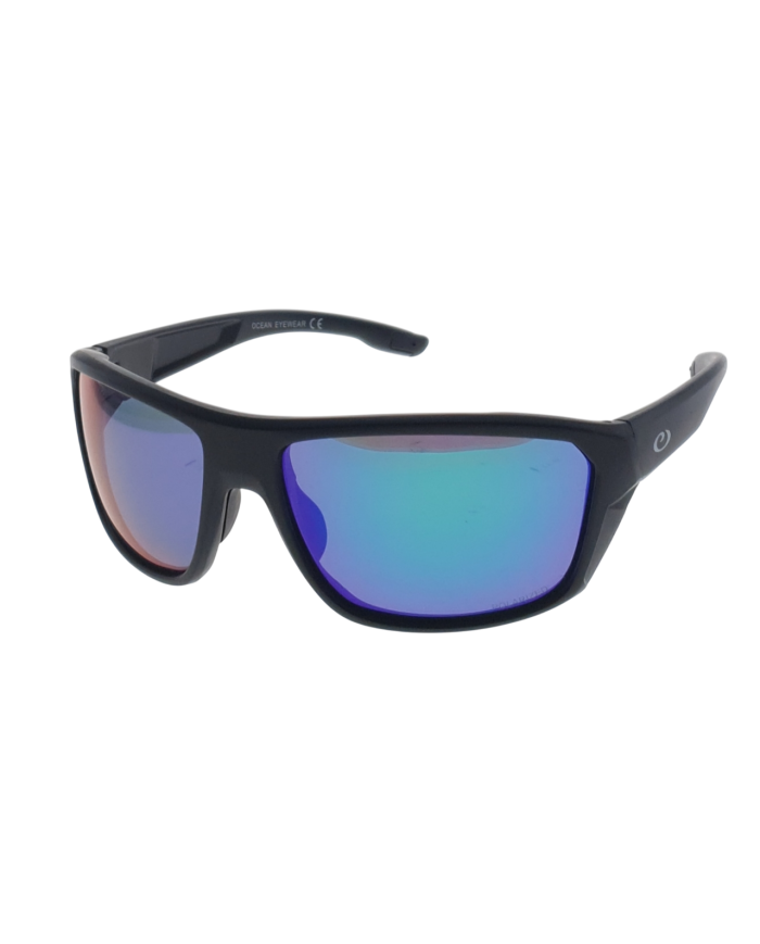Ocean Polarized Sunglasses - PF 651 Black Frame with Green Mirror Grey Lens