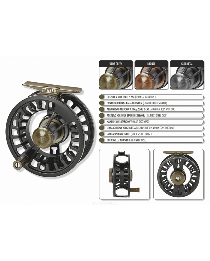 Modern design with company's logotype. Made in aluminum with CNC technology. Blameless, multidisc drag with flexible adjustment. Recommended for nymphing, wet and dry fly fishing. Good value for money.